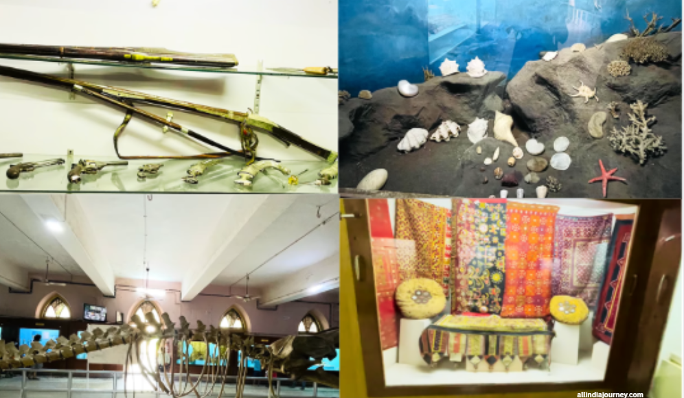 त्यामध्ये मानवांशशास्त्र, कला आणि हस्तकला, लाकडी आणि दगडी कोरीव काम, चित्रे,खेळणी, आदिवासी संस्कृती, त्यांची वाद्ये, दागिने आणि जीवनशैली दर्शवणारे स्वतंत्र दालन, वन्यप्राण्यांचे नमुने, जुन्या काळातील नाणी आणि जागतिक स्तरावरील विविध देशांतील दुर्मिळ वस्तूंचे प्रदर्शन आहे.