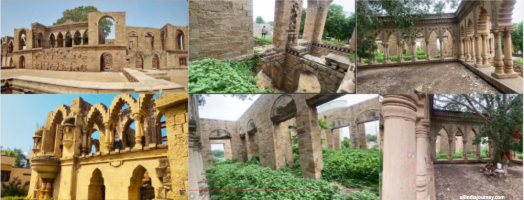 तसेच महालाच्या मध्यभागी संगमरवरी पुतळ्यांनी सजलेले खांबांचे अंगण आहे. व दरबार हॉलमध्ये छतावर केलेली नक्षीकाम केलेली चित्रे, राजांची मोठी तैलचित्रे आणि एक भव्य सिंहासन आहे. सध्या हा राजवाडा एक हेरिटेज हॉटेलमध्ये रूपांतरित केला असून पर्यटकांना येथे राजेशाही थाटाचा अनुभव घेता येतो.