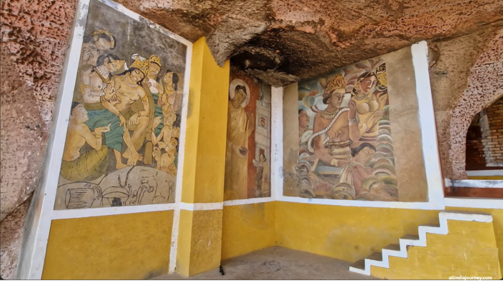 गुहेच्या भिंतींवर काही जुनी चित्रे आणि कोरीव काम पाहायला मिळते. तसेच येथे एक जुना किल्ला आणि भीमोरा आश्रम आहे. या लेण्या 3 र्‍या ते 4 थ्या शतकातील असल्याचे सांगितले जाते.पौराणिक कथेनुसार, पांडव वनवासाच्या काळात या ठिकाणी राहिले होते.